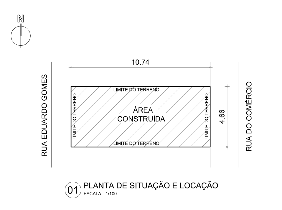 Áreas totais: Terreno com 50,05m² e construção com 50,05m².